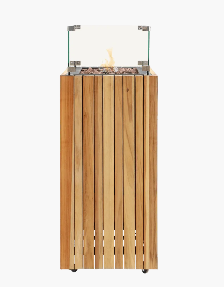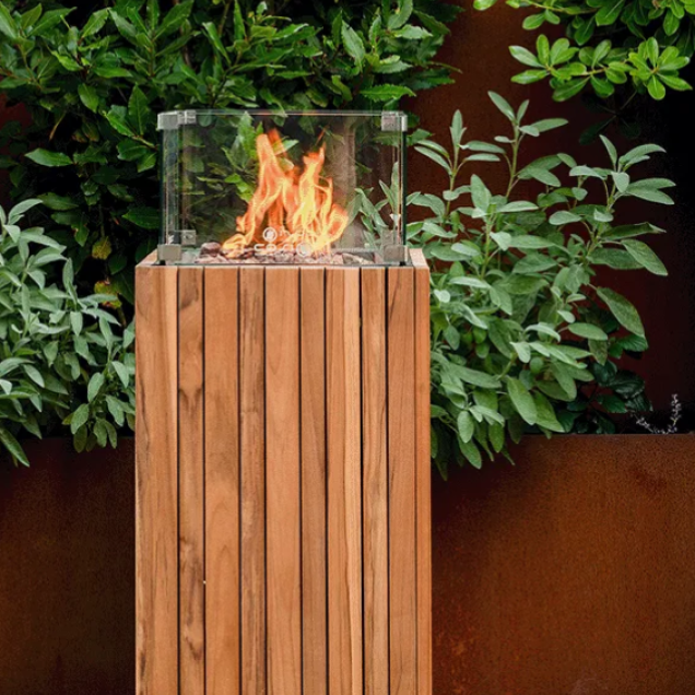 Cu Cosipillar Square teak, ai un adevărat punct de atracție în grădină, pe terasă sau sub verandă! Acest șemineu pe gaz, în formă de stâlp, are un corp realizat din lemn de teak și o culoare frumoasă, brun-aurie. Flacăra oferă o căldură plăcută de până la 4 kW.
