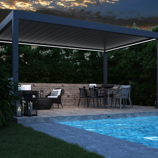 Panouri: Panourile sunt retractabile și creează un spațiu deschis de 79%. Cu telecomanda SOMFY, pot fi controlate panourile Pinela Deluxe și iluminarea LED opțională.